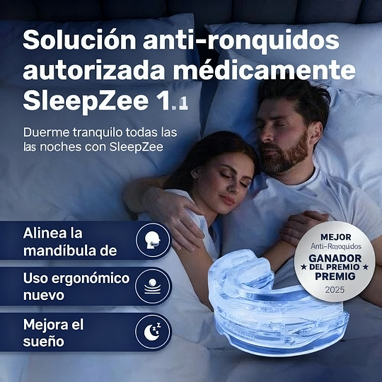 SleepZee es un innovador dispositivo contra los ronquidos desarrollado por ingenieros médicos en colaboración con otorrinolaringólogos y aprobado por la FDA. Este dispositivo es un salvavidas para las personas que roncan y sus parejas.